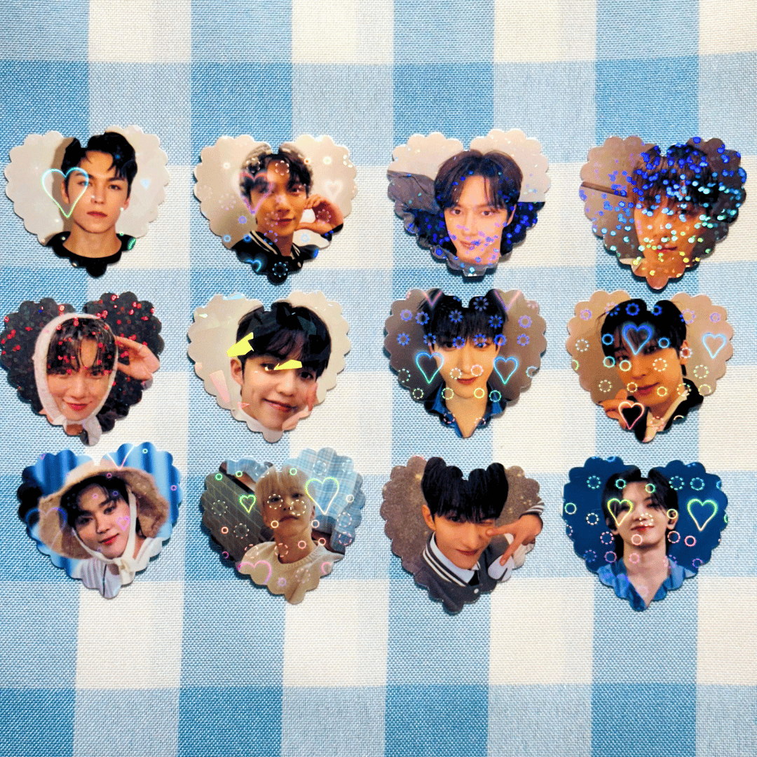 *You will get 4 stickers( 4 hearts ), all random pictures of the specific member you want